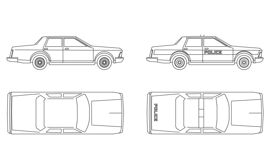 Police Car CAD Blocks Top View And Elevation Design