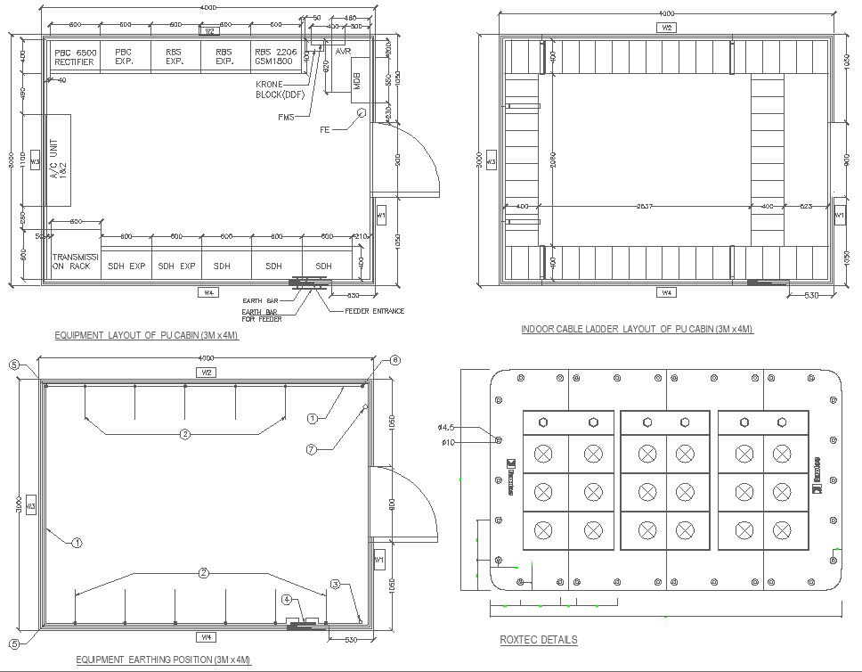 DWG drawing of the 40meter telecommunication tower Equipment layout and indoor cable ladder layout details are givenDownload the AutoCAD DWG file.