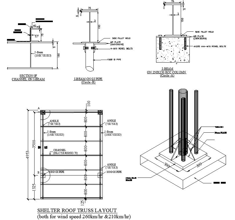 AutoCAD DWG drawing of the 40meter telephone tower shelter roof truss layout and I beam section details. Sectional details are clearly given in this drawing file. Also Location plan available in this DWG file. Download the AutoCAD DWG file. Thank you so much for downloading DWG file from our website