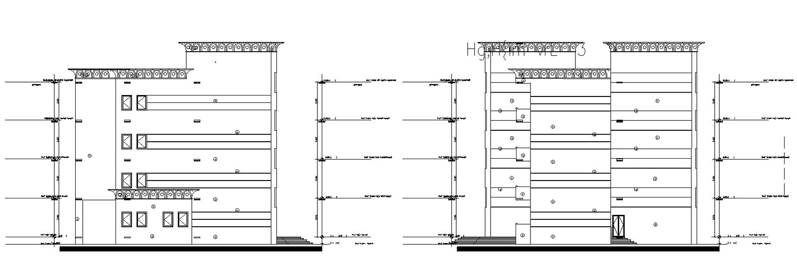 DWG Drawing Autocad 2d file of the typical section and the elevation details of the rear side hotel building. Download the AutoCAD DWG file.