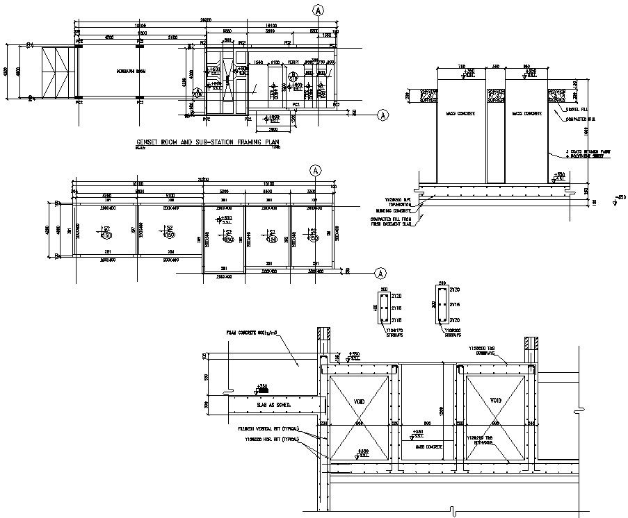CAD Drawing 2D file of the Genset room and substation frame plan details. Sectional details are clearly given in this drawing file. Also, reinforcement details are available in this DWG file. Download the AutoCAD DWG file. this drawing file will be useful for civil engineers. Thank you so much for downloading DWG file from our website