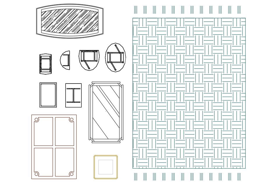The AutoCAD drawing of DWG file having detail of floor carpet and and table top view design that use in dining area, living room, drawing room and family lounge. download free AutoCAD blocks library DWG file.