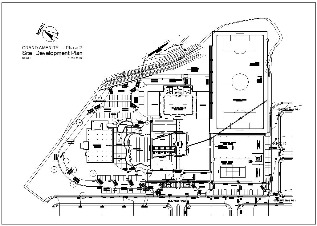 AutoCAD DWG 2D file of the Amenity resort Site development section plan details. Download the AutoCAD DWG file.