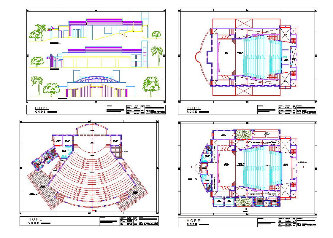 Ground Floor Lay-out & First Floor Lay-out design, Elevation, Section Detail, Auditorium Hall, foyer etc detail.