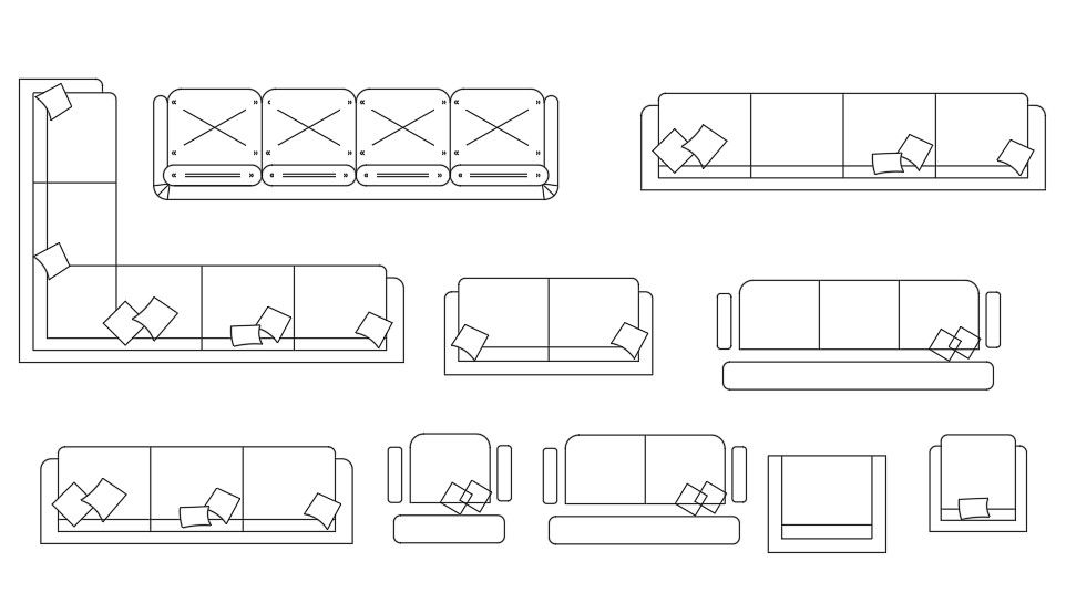 Different types of 2d Livingroom Sofa design Autocad furniture drawing blocks,Download the AutoCAD drawing file.