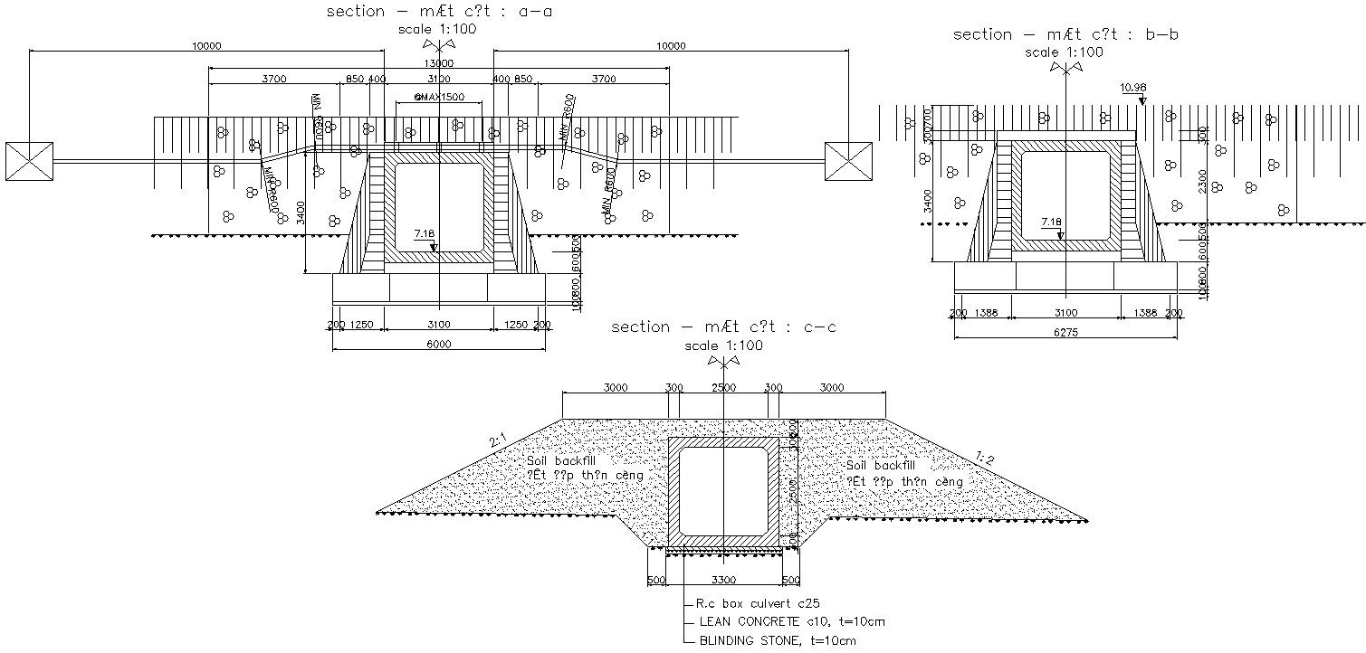 AutoCAD DWG 2D drawing file of the culvert cross section details. Sectional details are clearly given in this drawing file. Lean concrete, Blinding stone is available in this DWG file. Download the AutoCAD DWG file. Thank you so much for downloading DWG file from our website