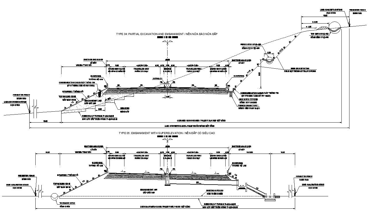 Partial Excavation and embankment with superelevation Drawing AutoCAD file.Download the AutoCAD DWG file.