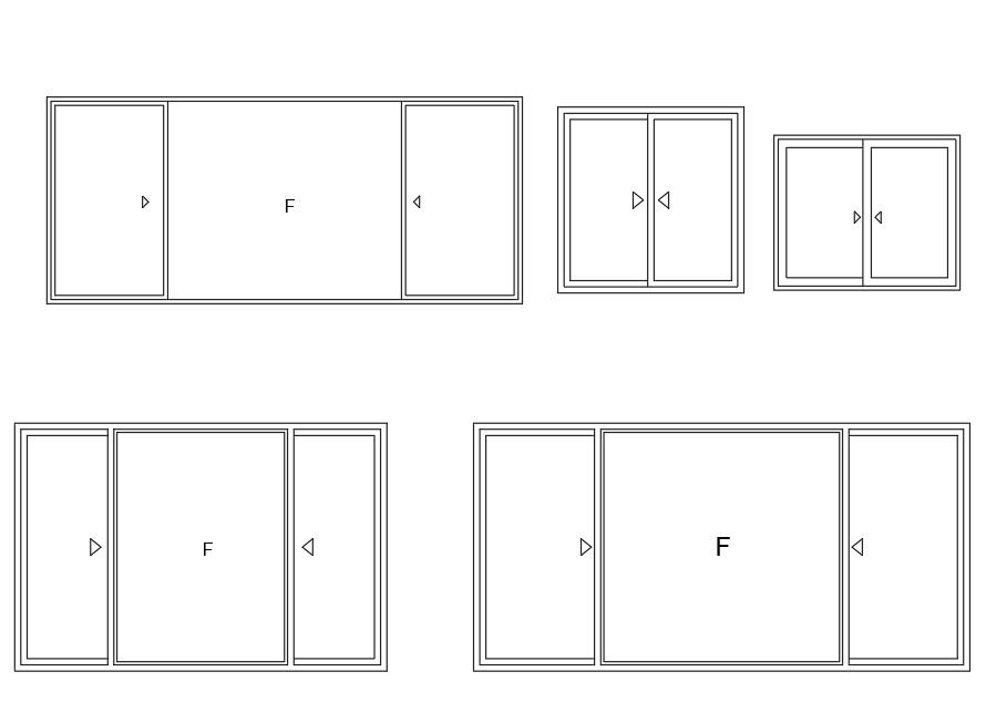 AutoCAD blocks drawing of sliding window front elevation design that shows in different size. download in free DWG file and use this CAD blocks for your suitable project window sliding.