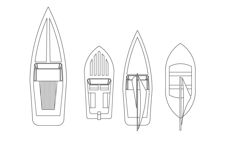 The AutoCAD drawing free DWG file of water craft CAD blocks which includes 4 different type of speed boar and normal boat top view design. download free watercraft free CAD blocks DWG file.