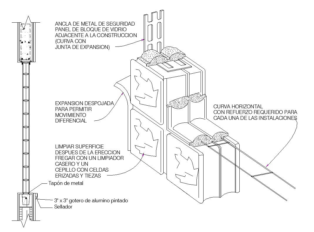 Horizontal Curve with reinforcement required for each of the facilities, 3 "x 3" painted aluminum dropper, Metal stopper etc detail.