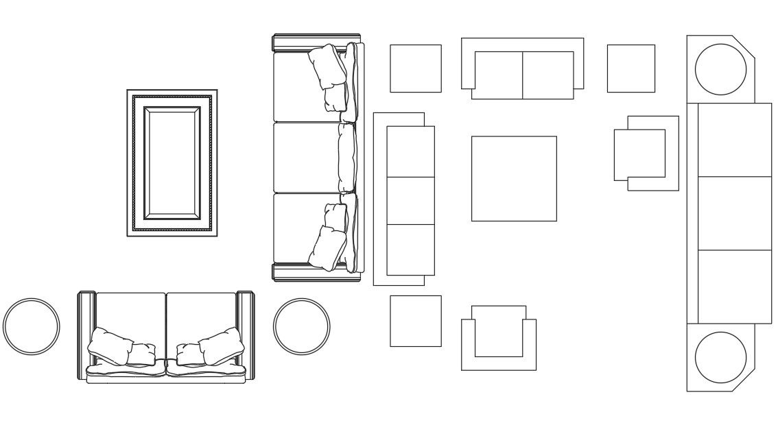 Living Roof Sofa Set Free Furniture CAD Blocks Drawing