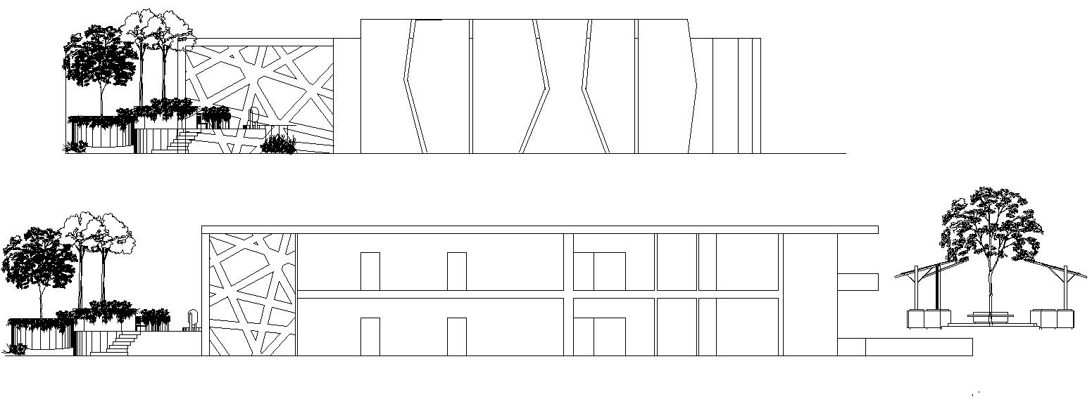 The AutoCAD Drawing file of the G+1front and back-office elevation section plan.Download the AutoCAD DWG file.