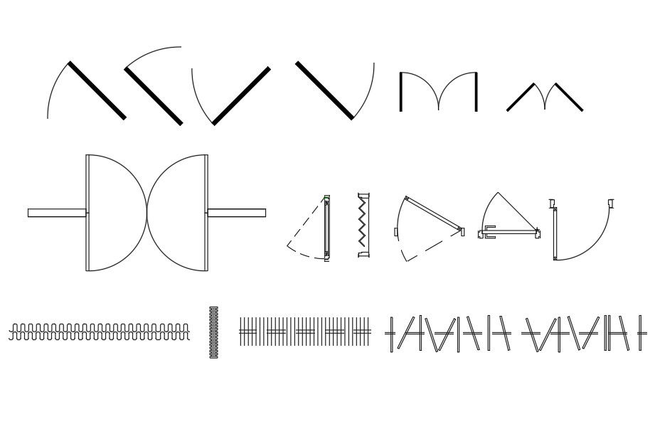The furniture CAD blocks drawing door plan top view shows different type and size of of door design that use in house and many other places CAD presentation. download free door plan drawing DWG file.
