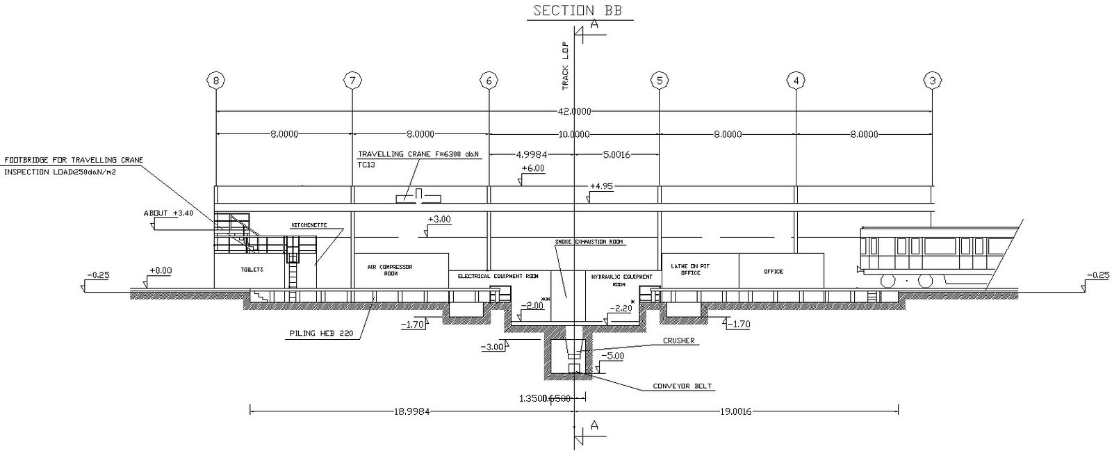 Longitudinal section details of the AutoCAD Drawing file. Sectional details are clearly given in this drawing file. The footbridge for traveling crane details are mentioned in this DWG file. Download the AutoCAD DWG file. Thank you so much for downloading DWG file from our website
