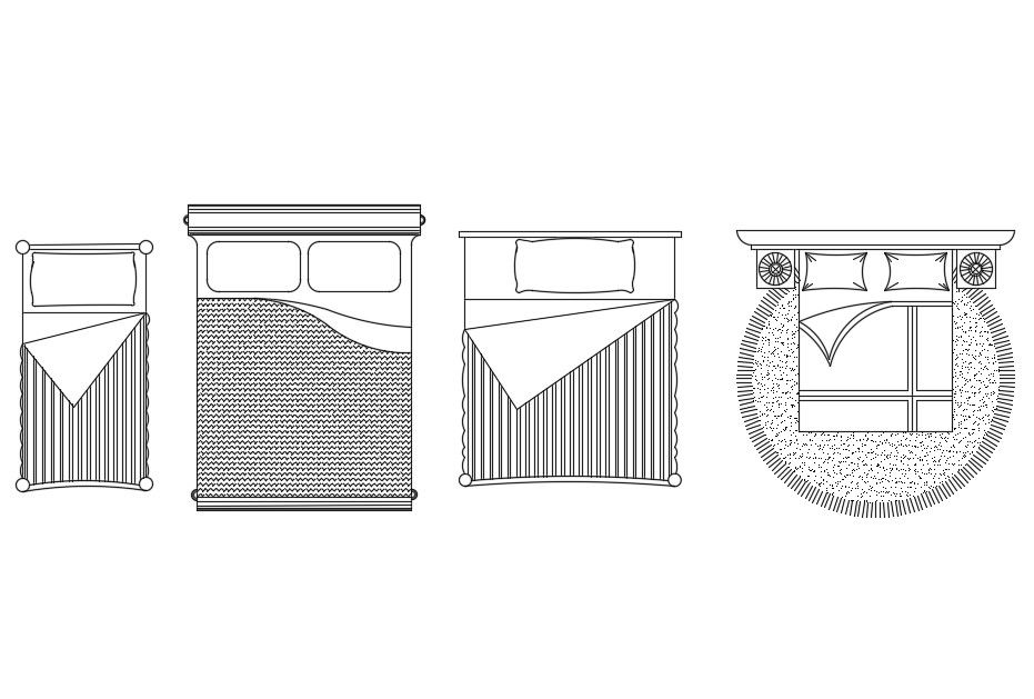 Four Different types of 2d Bed design Autocad furniture drawing blocks. Download the AutoCAD drawing file.