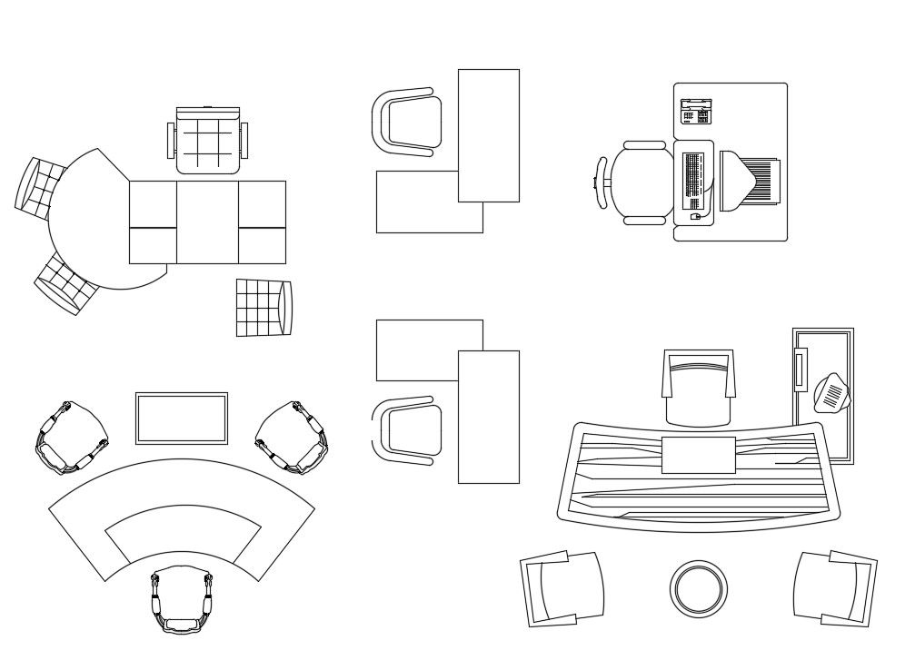 CAD Drawing DWG file of the various types of office tables and chairs with computers. That shows the variety of wonderful office table design details. Download the AutoCAD file. Thank you so much for Downloading the AutoCAD DWG files from our website.