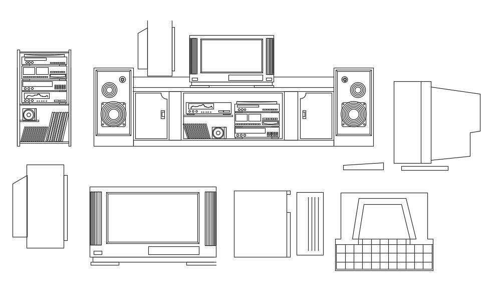 DWG AutoCAD drawing file of the various types of the Television set block is given. This drawing shows a variety of Television, deck, speaker, woofer, radio tape elevation Block design are available in this drawing. Download the AutoCAD file. Thank you so much for Downloading the AutoCAD DWG files from our website.