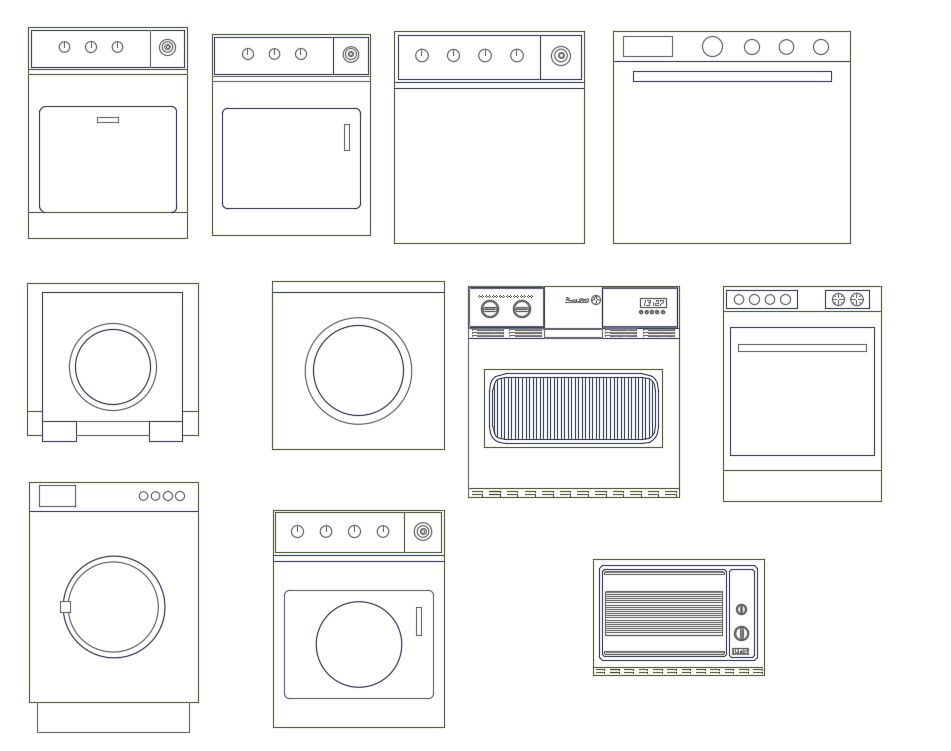 2D AutoCAD drawing file of the various types of washing machine block design. This drawing shows a variety of washing machine elevation Block design is available in this drawing. Download the AutoCAD file. Thank you so much for Downloading the AutoCAD DWG files from our website.