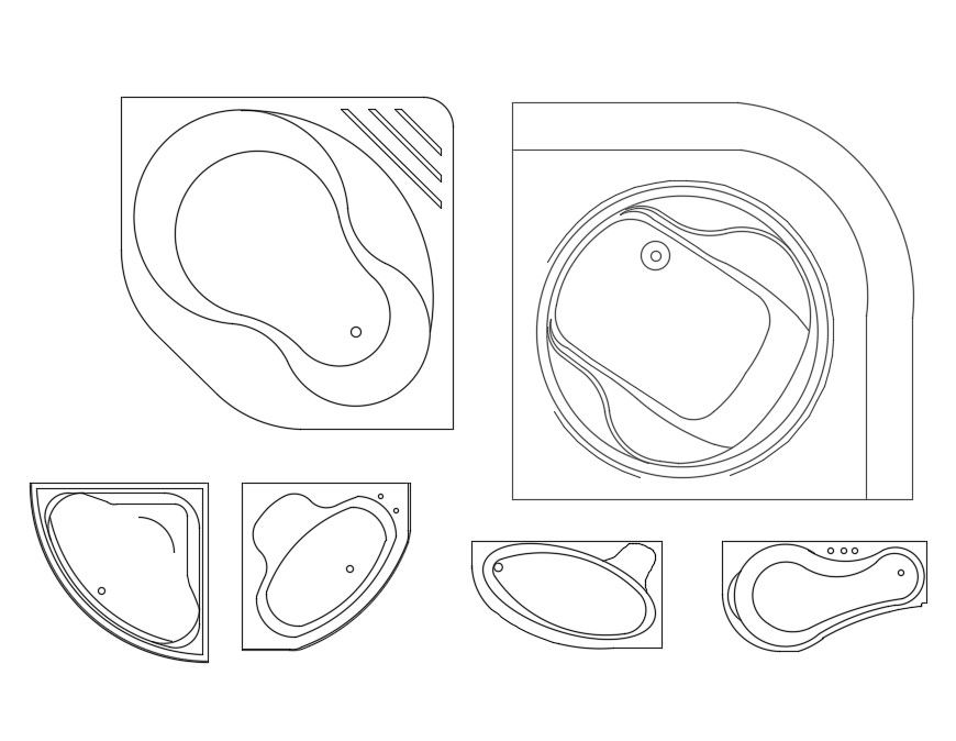 AutoCAD 2D drawing file of the various types of bathtub block design. Download the DWG file.