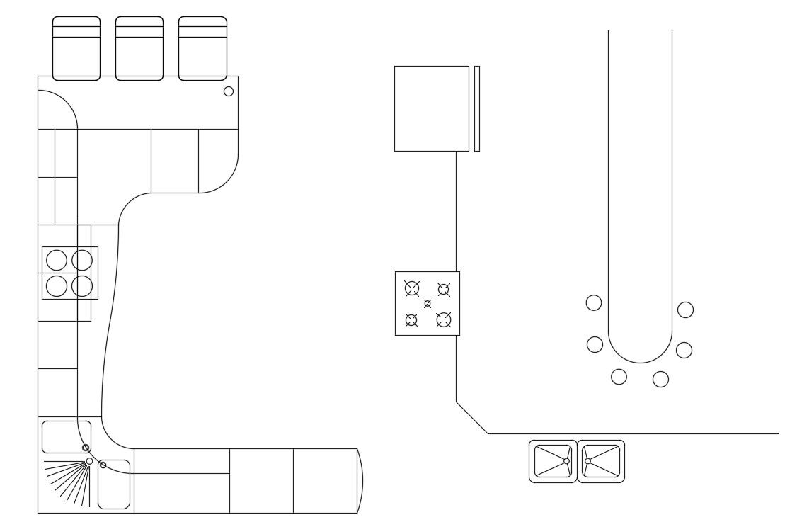 AutoCAD 2D drawing file of the modern kitchen block design.Download the AutoCAD file.
