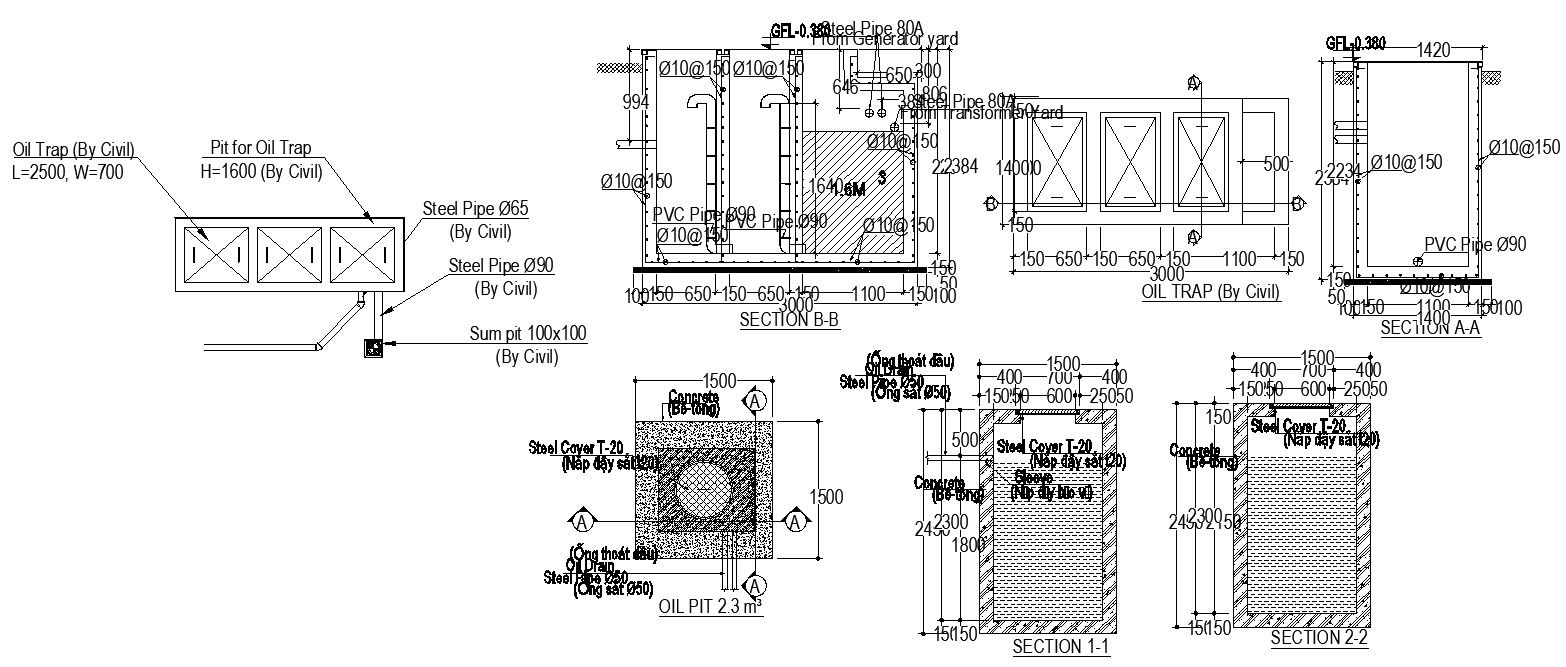 The drawing file of the oil pit and oil trap details. Download the AutoCAD DWG file.