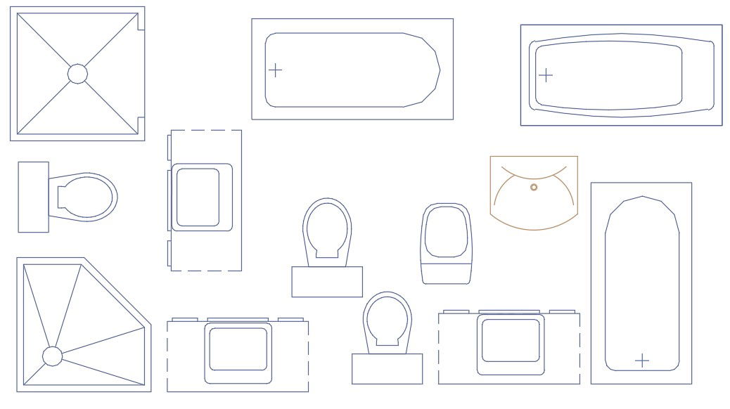Free Download Bathroom Sanitary CAD Blocks Top View