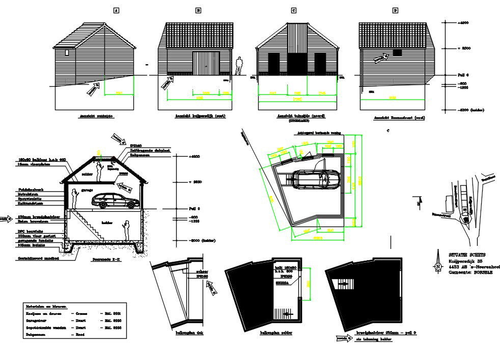 garage detail for section and elevation full detail in this drawing 2d and PDF are available for use section overview.