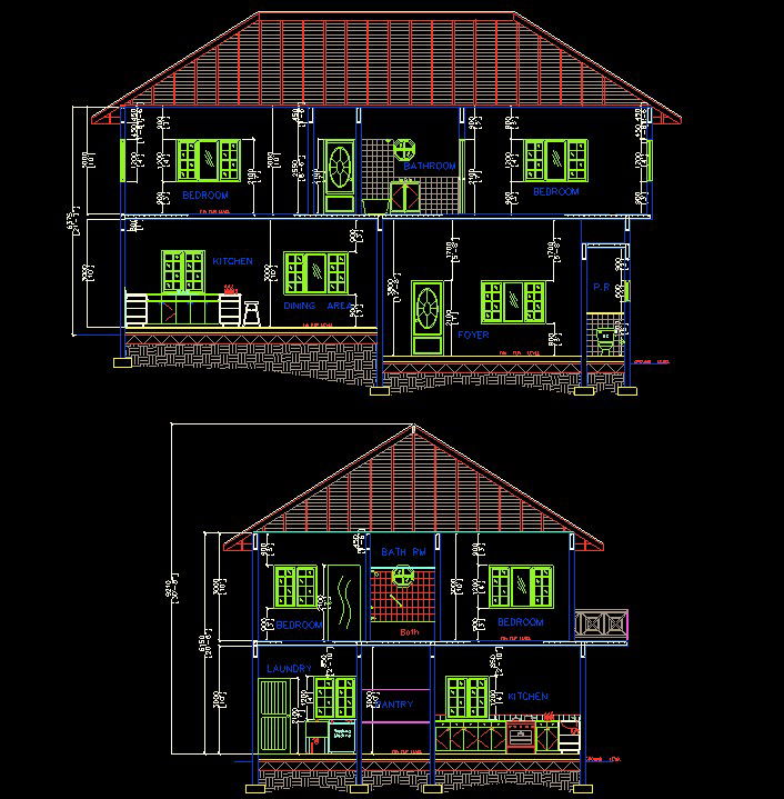 house length 47''-6*64'-2'' all dimension are completed in this drawing elevation section plan all different type elevation is available you can use for house drawing