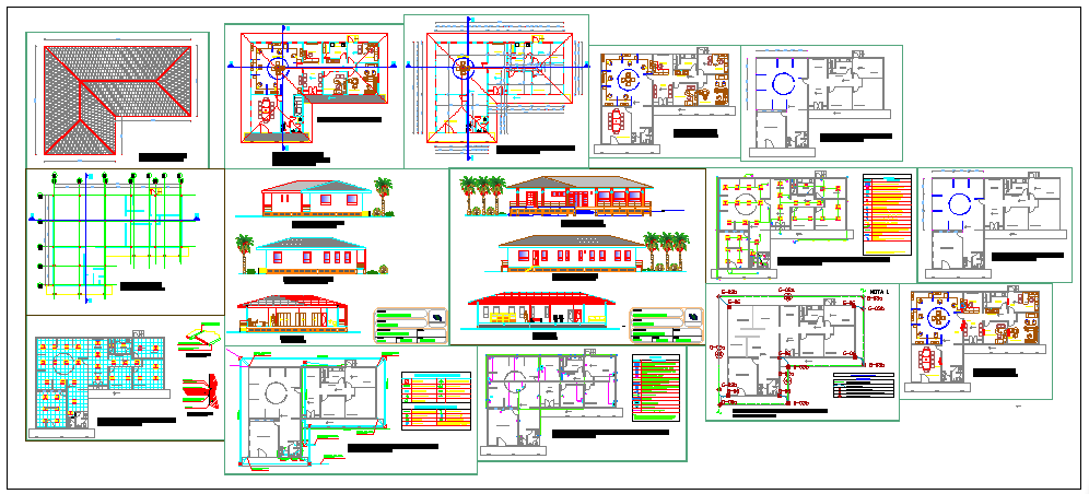 office structure design for campground. with roof detail, Center line plan, Floor layout with section, Furniture layout, All side elevation detail, sanitary detail, Door window scheduled etc all detail available in this drawing.
