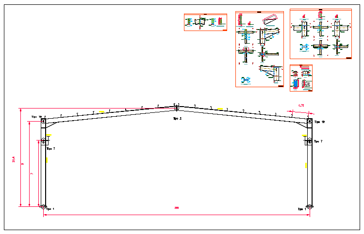 This is a Industrial building Gateway design with plan, all section, and detail drawing available in this drawing.