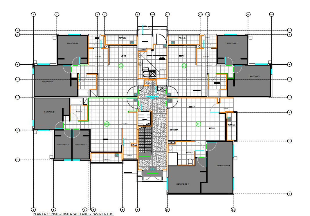 The residence house apartment cluster layout plan CAD drawing includes 2 BHK and 3 BHK layout plan drawing that shows 4 unit house plan with center line detail. also has flooring detail door and window marking DWG file. download AutoCAD apartment cluster layout plan DWG file.