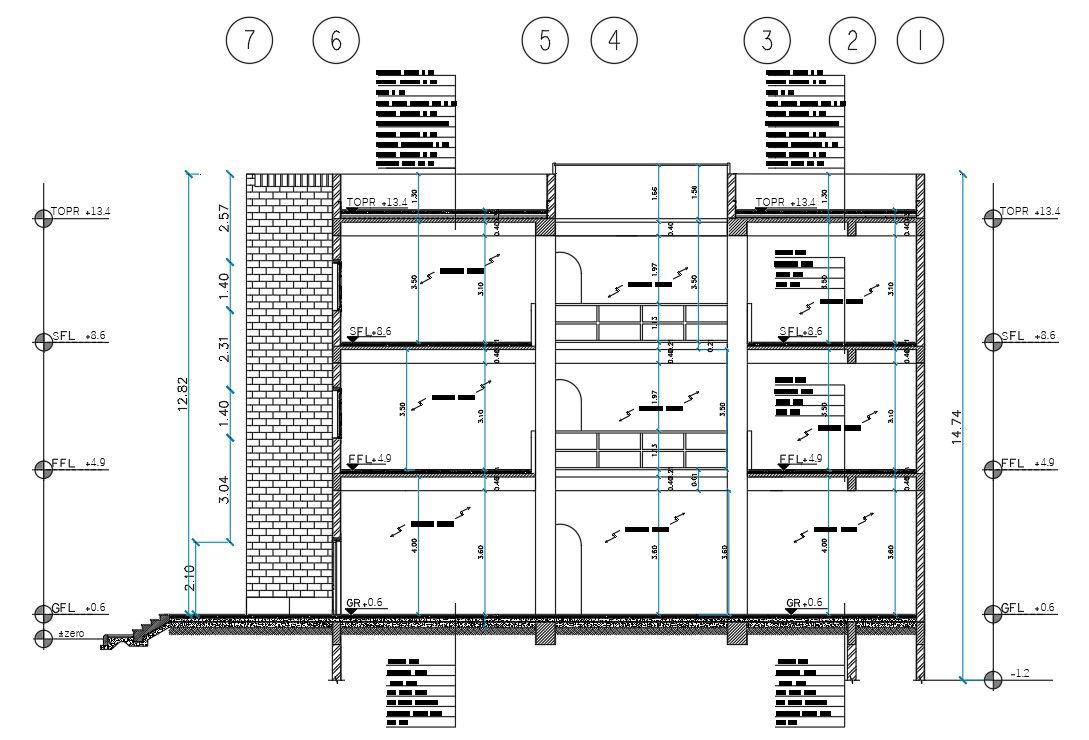 3 Level building Section Drawing AutoCAD File