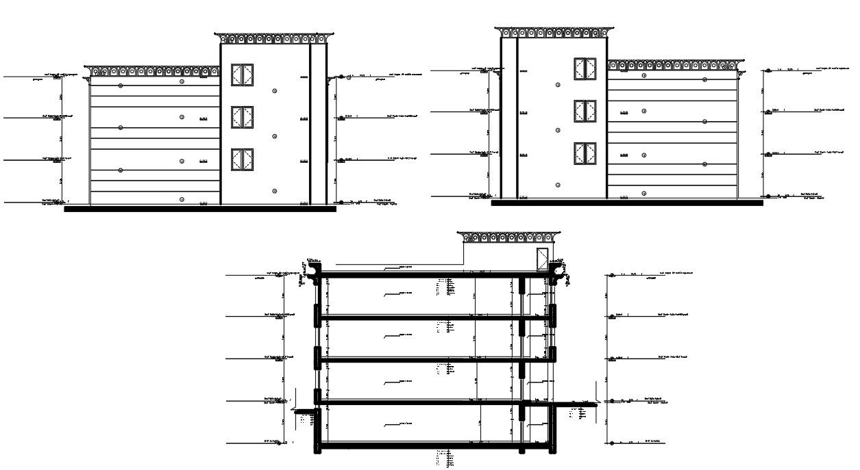 2d AutoCAD Drawing DWG file having detail school building sectional elevation drawing that shows 3 storey floor level building structure design, wall section, and measurement detail. download free school project DWG file.