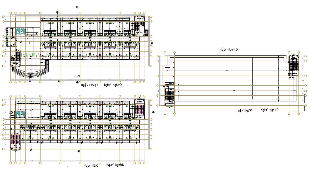 The school project ground floor and first floor layout plan with center line detail that shows class rooms, admin office, gallery, both side staircase and lift facility. download AutoCAD drawing of school project DWG file.
