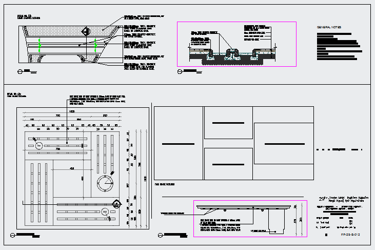 Drain channel plan or section and general notes.and tree great with up light opening 220 mm drawing.his plan or section of tree great and watering holes for drainage mentioned in this drawing.
