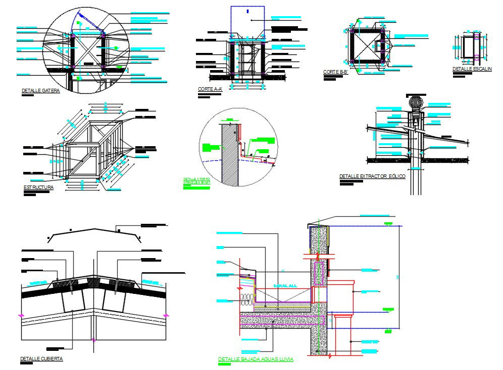 2d CAD drawing of wind exterior sectional elevation design that includes metalcom channel profile, cat hatch lid projection, welded staircase to main structure, hatch lid projection cat, thermal insulation, cover seal and shaft per work. download free Wind Extractor detail DWG file.