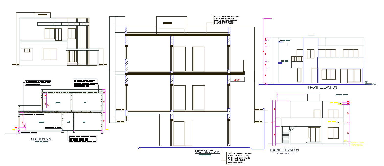 G+1 Architectural residential Building Section and elevation Autocad Drawing is available. Front elevation details are available in this drawing file. The door, window, and roof are visible in this elevation drawing. Column and beam are showed in the section plan. Download the AutoCAD DWG file. Thank you so much for downloading DWG file from our website