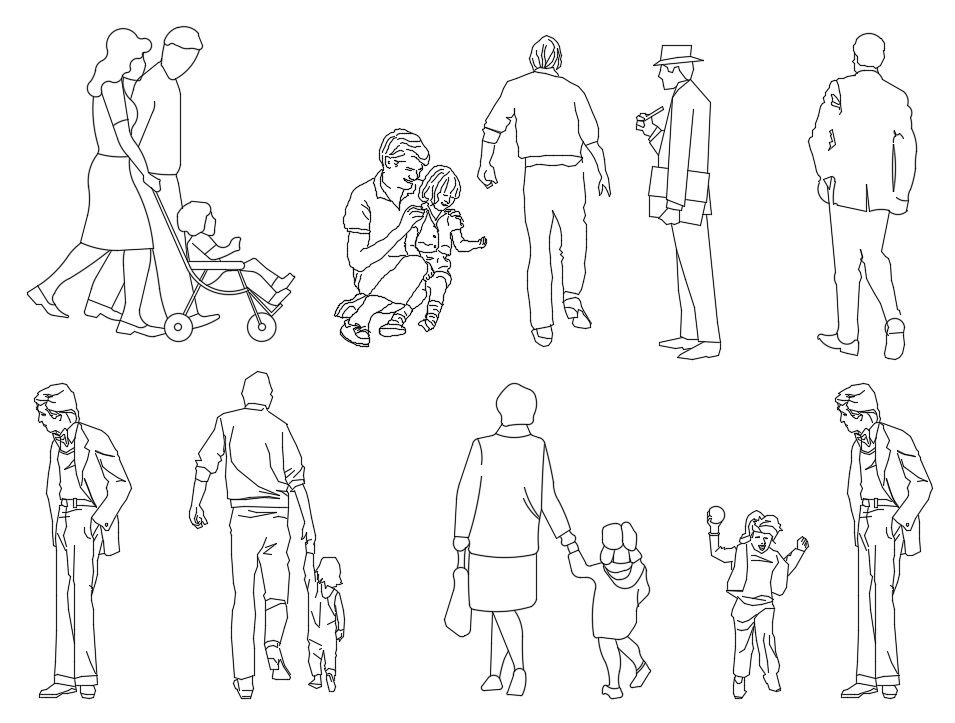 CAD drawing file having various styles of people block design. Women with children, men with children, playing kid, family people blocks, modern girls, office girls, and other types of people block are given in this drawing. These blocks will be useful for civil engineers, architects, and interior designers. You can Download this AutoCAD drawing file. Thank you so much for Downloading the AutoCAD DWG 2d files from our website.
