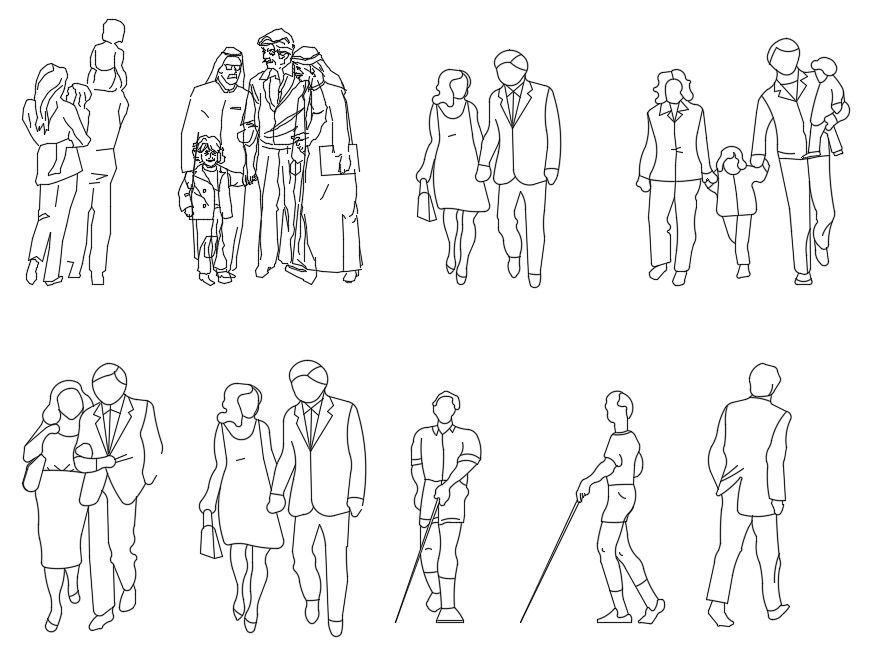 Different styles of beautiful people block design are available in these DWG blocks drawing. man and Women with children, family people blocks, modern girls, office girls, and other types of people block are given in this drawing. These blocks will be useful for civil engineers, architects, and interior designers. You can Download this AutoCAD drawing file. Thank you so much for Downloading the AutoCAD DWG 2d files from our website.