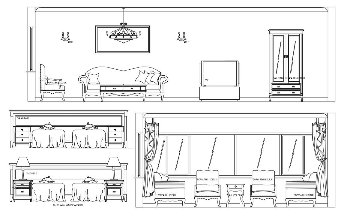 The various types of furniture blocks are given in this drawing. It having a block design of bedroom, living room, and foyer furniture are given. two types of beds with side tables and lamps, sofa,chairs,TV,Ceiling lamp,table,cupboard,window ,curtain are the block models available in this drawing. Download the AutoCAD DWG file. Thank you so much for Downloading the AutoCAD DWG files from our website.