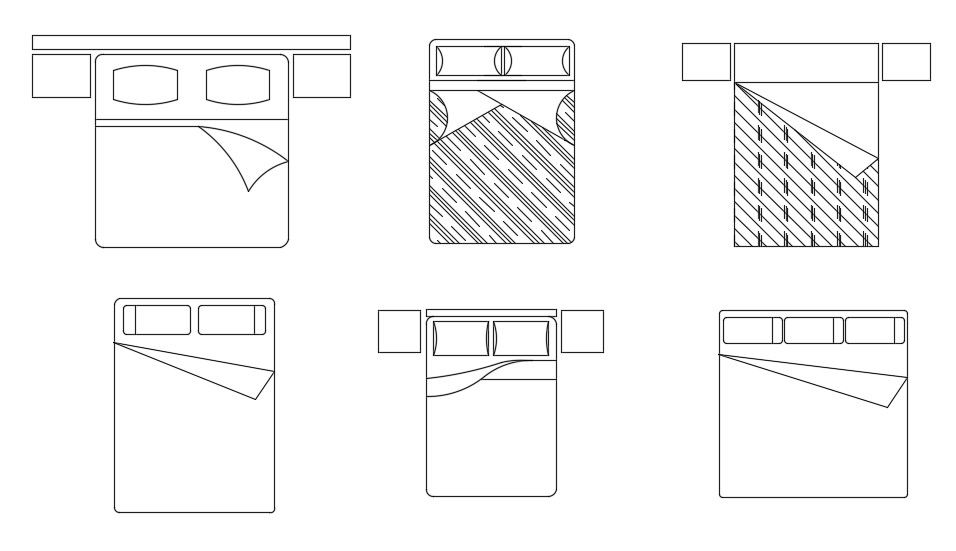 Six Different Types of 2d Bed design Autocad furniture drawing blocks.Download the AutoCAD drawing file.