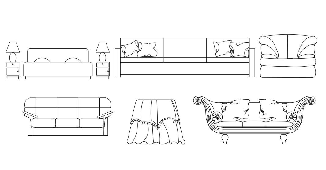 Autocad drawings having five various types of furniture blocks. This drawing file having a beautiful sofa, chairs, and light on table block design these blocks will be useful for interior designers. Download the AutoCAD drawing file. Thank you so much for Downloading the AutoCAD DWG 2d files from our website.