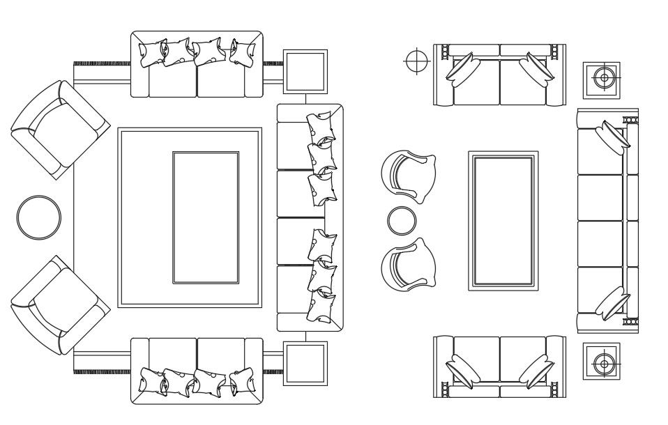 Two Different Option Of Living Room Furniture Drawing DWG File