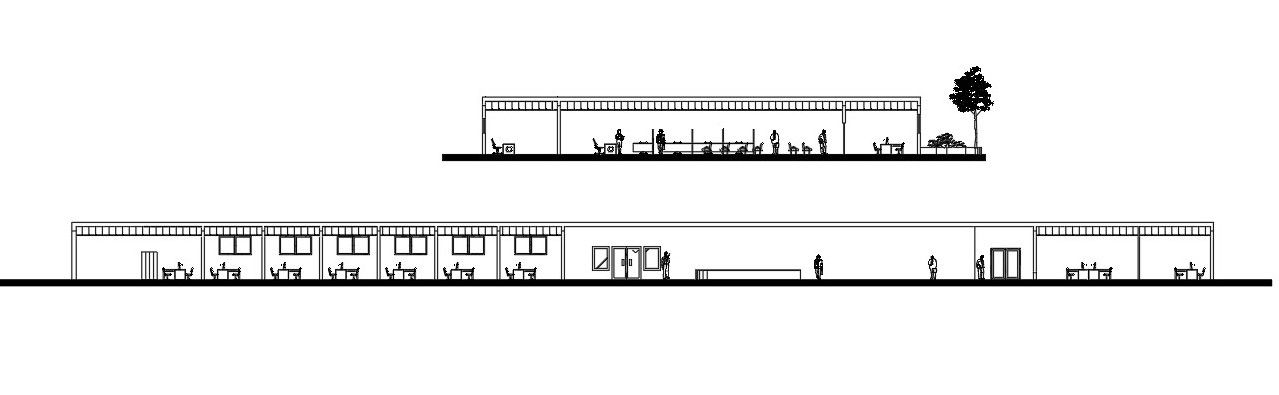 CAD DWG drawing of the restaurant building side elevation and section details.Download the AutoCAD DWG file.