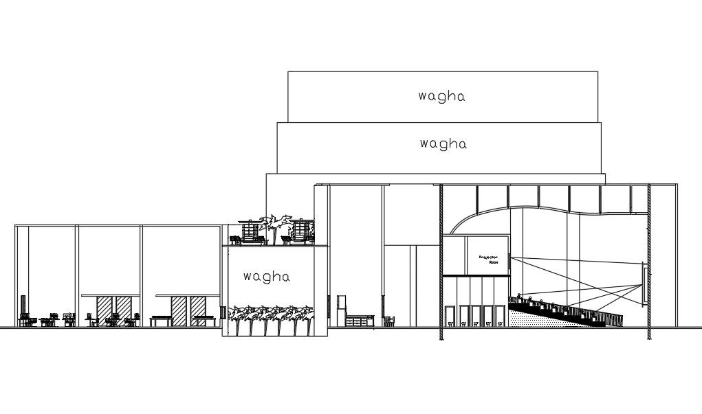 Restaurant building side elevation and section AutoCAD DWG file