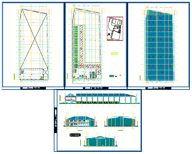 This is factory design drawing like industrial plant drawing with plan, elevation section, detail drawing furniture for reception table drawing, parking area mentioned drawing all drawing in this file.