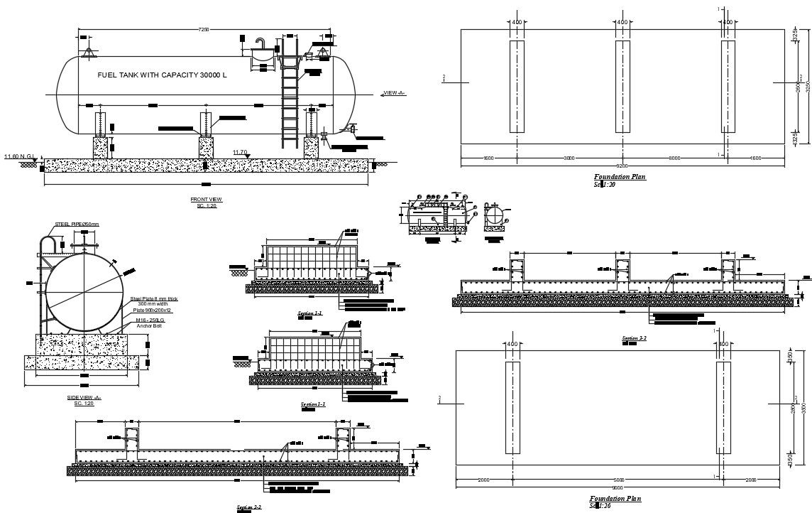 The AutoCAD drawing file of the Fuel tank section and elevation drawing. Sectional details are clearly given in this drawing file. The detail of the 30000-liter capacity fuel tank back and side view sectional details are given in this DWG file. Download the AutoCAD DWG file. Thank you so much for downloading DWG file from our website