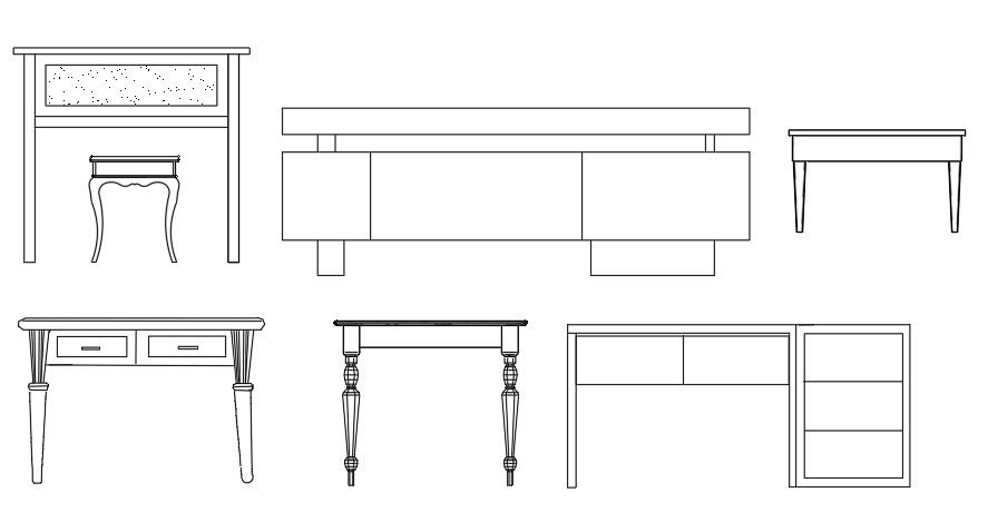 Different types of study table design Autocad furniture drawing blocks, Download the AutoCAD drawing file.