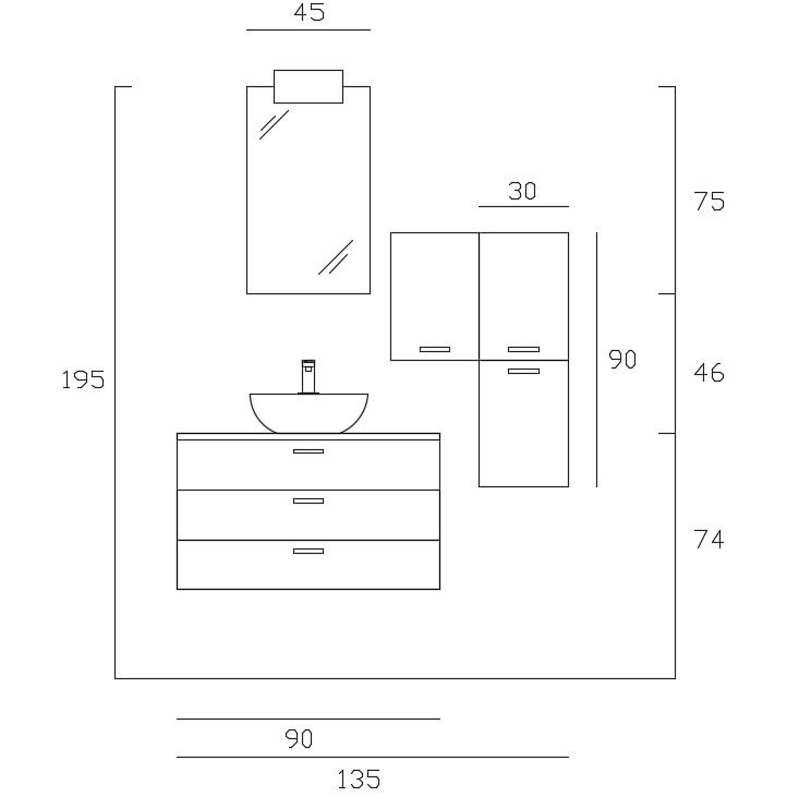 Counter Top Wash Basin with Wall Mounted Cabinet DWG file