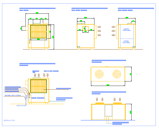 This is a Air cooled remote condenser detail drawing section and plan available in this file.